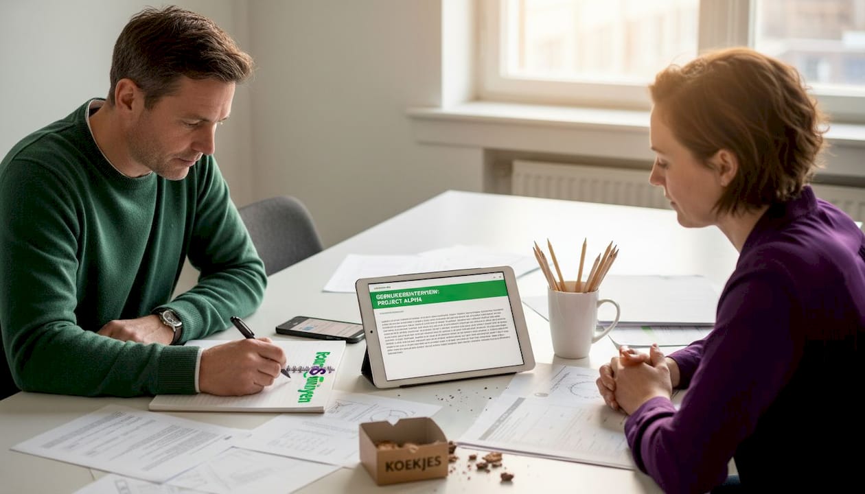 Pro-tip: Begin met vijf tot zes gebruikers voor kwalitatief inzicht. Dat is genoeg om de meest voorkomende knelpunten te ontdekken. Schaal daarna op met een survey om de omvang van het probleem te valideren. Groot beginnen kost tijd en levert zelden evenredig meer inzicht op.