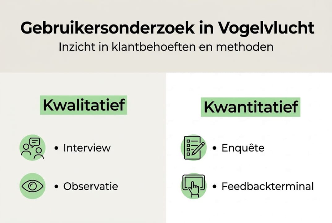 | Methode maakt verschil | De juiste combinatie van kwalitatieve en kwantitatieve methoden geeft de meest waardevolle inzichten. |